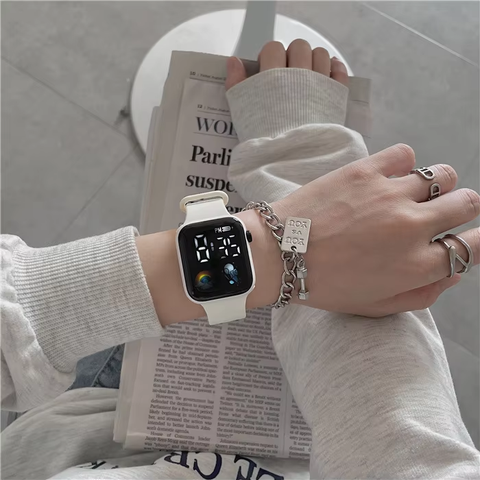 Pulsera deportiva de reloj de pulsera digital LED cuadrada para niños con corazón de moda para estudiantes